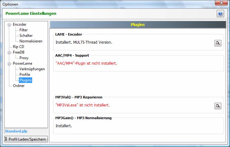 Hier sollte der Encoder LAME.EXE „Installiert“ sein. Sollte